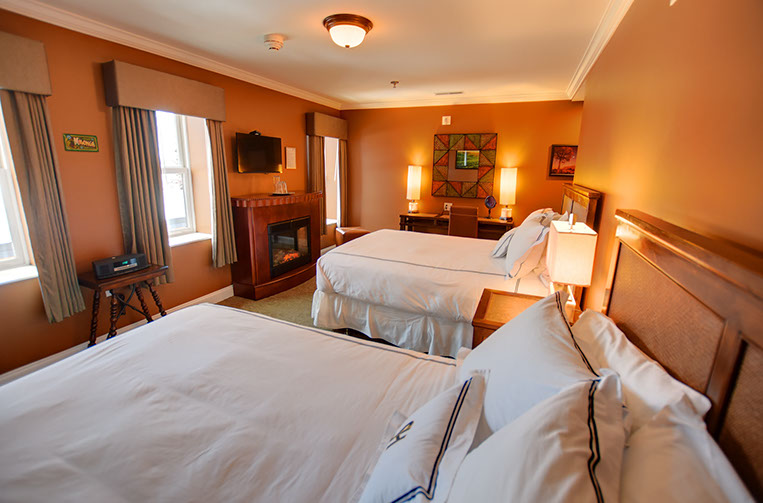 Guests on a romantic getaway may prefer one of our Luxury Guest Rooms featuring Lasco® Champagne Bubbler massage tubs for two. Our most unique of the three is our Parisian styled "Champagne" Luxury Guest Room with the perfect romantic amenities. The Two-Room suite is perfect for families! One room features a king bed with a deep soaker tub and overhead shower. The other has two extra-long twin beds and a walk-in massage shower.